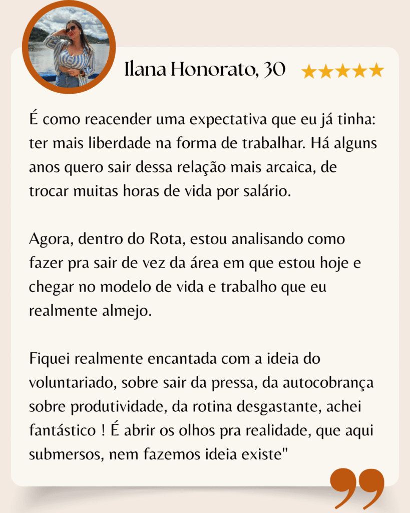 Não. O objetivo do Rota da Liberdade é justamente o contrário: te ajudar a criar um plano de transição consciente, pra que você comece aos poucos, com segurança, sem precisar abandonar tudo de uma vez.