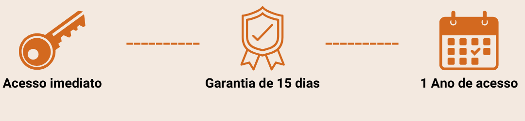Se por algum motivo você não se identificar com o conteúdo ou sentir que isso não trouxe nenhum benefício real, você pode acionar a garantia incondicional de 15 dias. Ou seja, você pode assistir ao curso inteiro e, se não fizer sentido pra você, é só pedir o seu dinheiro de volta, sem burocracias.
